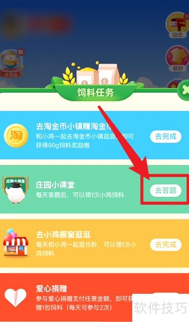 跳绳时,以下哪种做法有利于防止运动损伤?这是支付宝小鸡庄园4月9日的问题,有回答正确后可以获得免费小鸡饲料,那么今天的正确答案是什么呢,下面就是蚂蚁庄园2025小鸡答题4月9日答案,有需要的玩家快来看看吧。